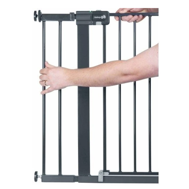 Η εγκατάσταση είναι πολύ εύκολη και γίνεται με το ίδιο σύστημα πίεσης (U-Pressure) χωρίς τρυπήματα ή εργαλεία. Διατηρεί την ίδια στιβαρότητα και ασφάλεια με την κύρια πόρτα, ενώ το μαύρο μεταλλικό φινίρισμα ταιριάζει απόλυτα με τις μαύρες εκδόσεις των πορτών Safety 1st.