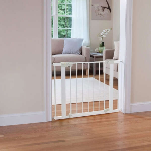 Μεταλλική πόρτα ασφαλείας Safety 1st Auto Close Λευκή με αυτόματο κλείσιμο – Ανοίγει με ένα χέρι, κλείνει αυτόματα και έχει ένδειξη SecureTech, για ανοίγματα 73-80 cm.